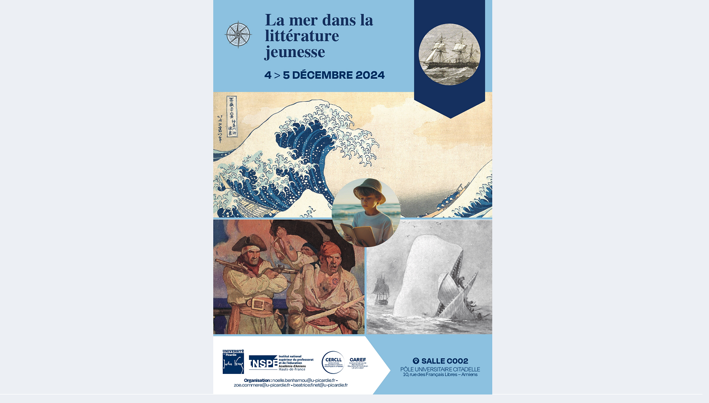 Colloque La Mer dans la littérature jeunesse, org. Noëlle Benhamou (CERCLL), Zoé Commère (CAREF) et Béatrice Finet (CAREF), 4-5 décembre 2024, salle C002, Pôle Citadelle (Amiens).